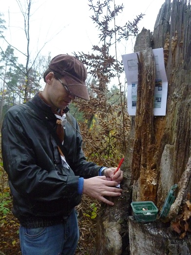 - pri tomto strome je drevo naukladané akosi podozrivo ´kešersky´...: - ...a hľa - je tam keška! ("Mohutná borovica"):