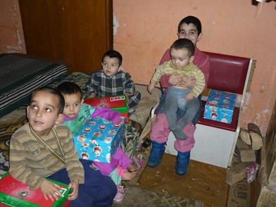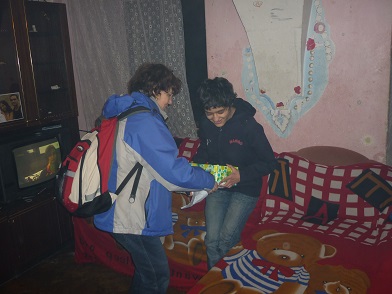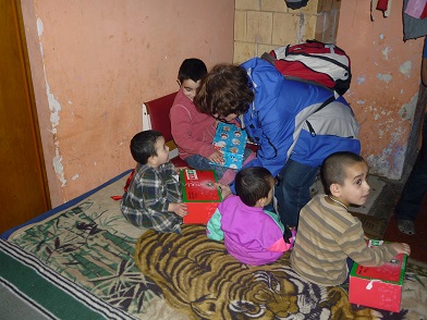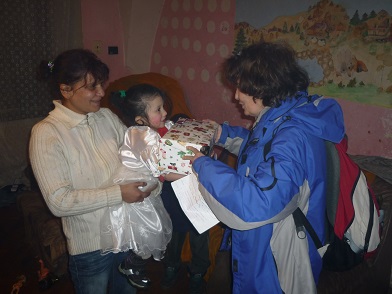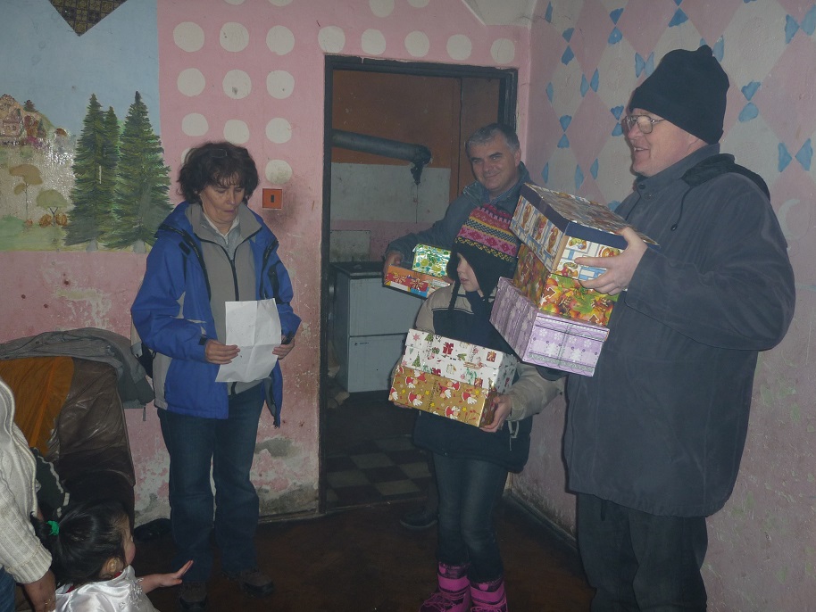 - najprv sme prišli do jednej „ubytovne“; hneď v prvej rodine sa vianočným balíčkom veľmi potešili: